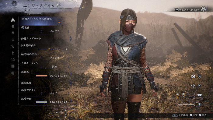 前作ではスキルの区分として設定されていた「ニンジャ」と「サムライ」が、今作では明確に「スタイル」という形式に変化。