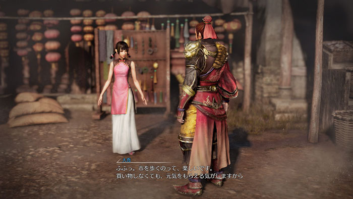 また、街の中ではプレイヤーキャラクター以外の武将が、普段の衣装とは違ういわゆる「平服」の姿で登場、交流する、といったシステムもある様子。