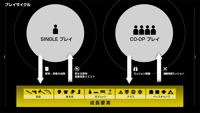 なぜそういった形式を取る事になったのか、その理由については公式では「CO-OP」時に「シングルプレイ時」のキャラクターデータをそのまま使うため、と説明されています。