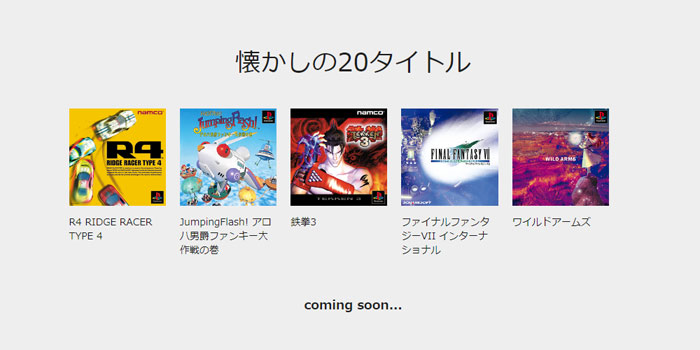 と、このような感じで、PS時代の往年の名作と呼ばれる作品が収録されているのがわかります、あくまで現時点で発表されている分のみ。