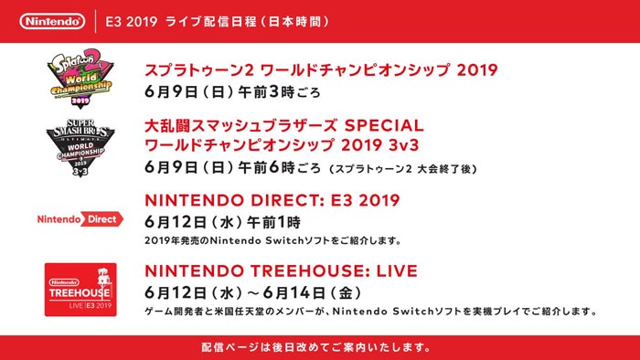 また、このE3の日程付近では、任天堂が開催する大会の配信なども含め、かなりの数の番組のライブ配信が決定しています。
