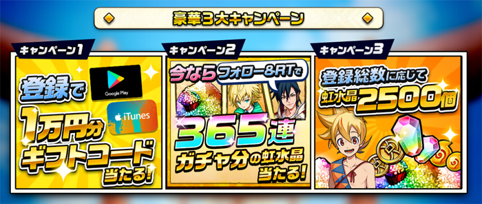 事前登録系のキャンペーンを行うのは珍しくないですが、かなり気合の入った内容ですね、特に、抽選とはいえ1万円分のギフトコードは非常に嬉しいです。