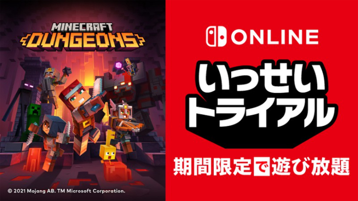 この「いっせいトライアル」は選出されたタイトルを期間限定で遊び放題、無料で遊べるという企画となっていて、それに「マイクラダンジョンズ」が選ばれたという事ですね。