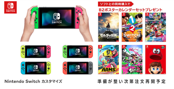 ゲーム好きにとっては、やはり最新作「スプラトゥーン2」が熱い状況ですので、早くスイッチを確保したい人も多いと思います。