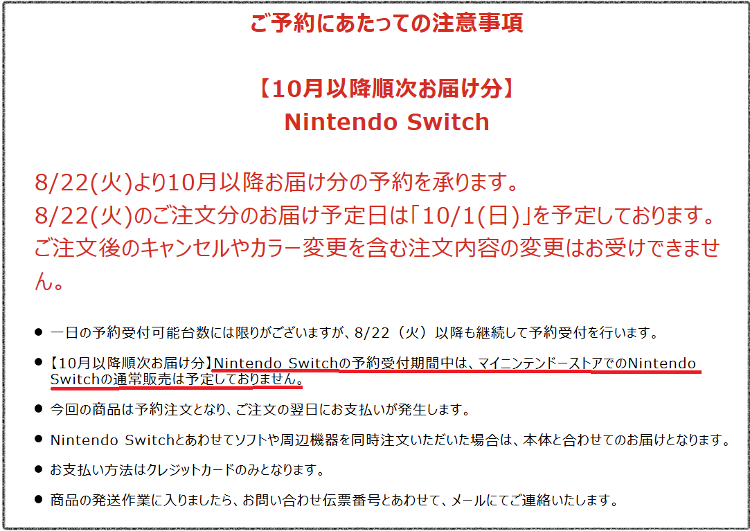 "マイニンテンドーストア"でニンテンドースイッチの予約受付(10月以降お届け分)が始まります!